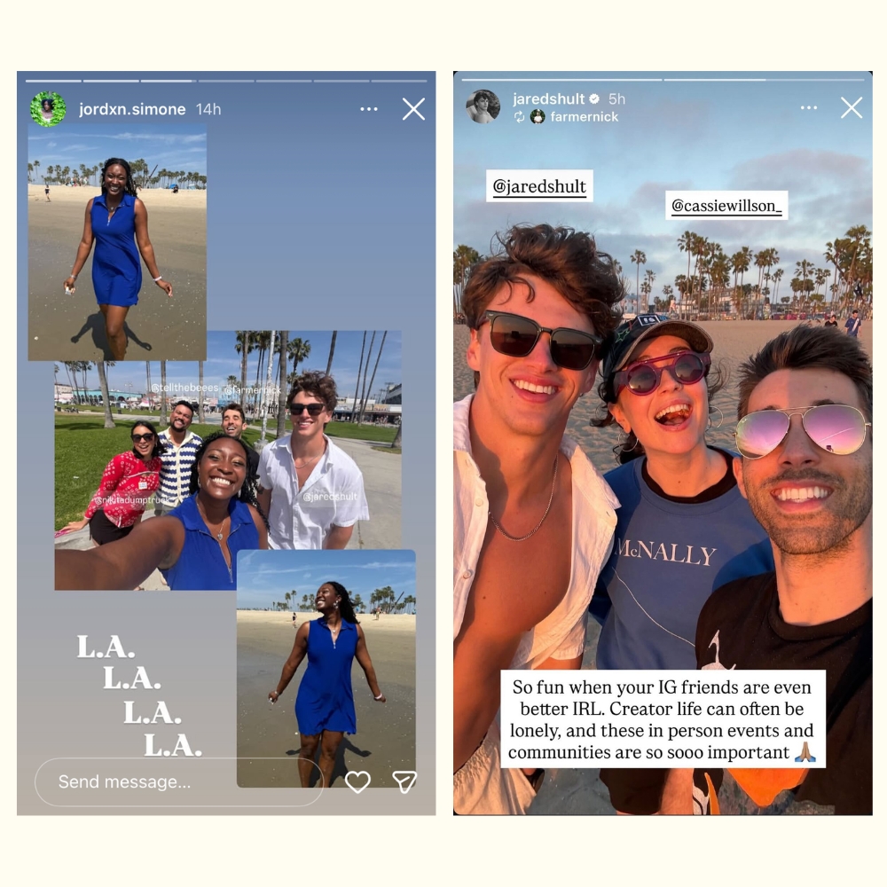 This year we kicked the program off with an in person event, to learn about our Affordability Framework, share content ideas and bond face to face. It didn’t hurt that we were a few blocks from the beach in Venice, and the cohort all walked down to the ocean on the lunch hour to take photos because one thing about these creators is that they are always working. The algorithms, especially TikTok, demand a certain rate of content to stay in good standing. While being an independent contractor is sure to have its benefits, the hustle and the health insurance costs are anything but fun. Monthly premiums for creators who are on the Affordable Care Act recently skyrocketed to over two times what they were paying last year, and many of our fellows are still facing an uphill battle to get paid fairly for the content they make. Last year we got feedback that the monthly stipends and longer term contract the fellowship provides are both rare and helpful in providing some stability in a wildly unpredictable economy.